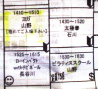 19:15からの「Y師匠のエアロ50」の変更になっていた!ここを「エアロ60」にすると・・・「ピラティス」の準備がうまくいかないらしい!!